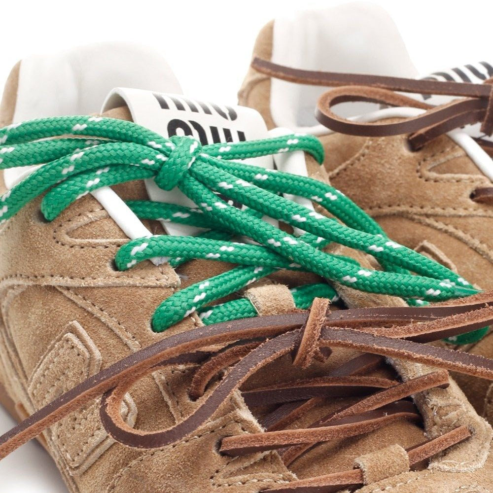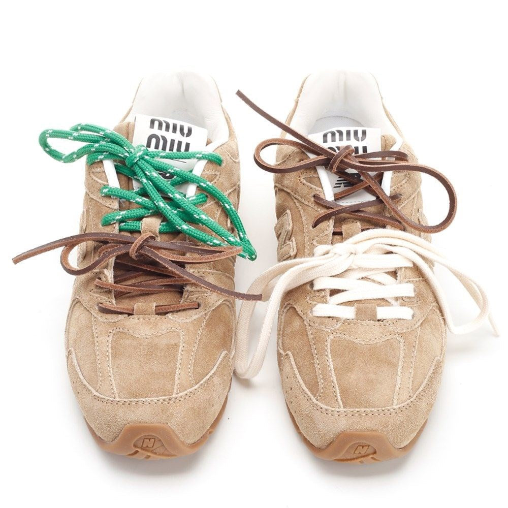 The 530 SL Miu Miu x New Balance combines Miu Miu’s artisanal sophistication with New Balance’s athletic heritage, resulting in a luxury sneaker with a striking and contemporary aesthetic. In this version, the model features an upper fully crafted in premium beige suede, offering a soft texture, minimalist visual appeal, and refined finish.